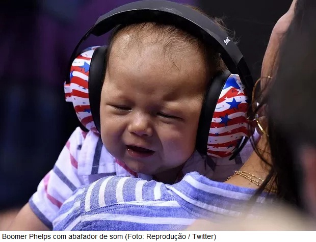 Com apenas três meses, o menino aparece sempre no colo da mãe usando um abafador de som, que o mantém tranquilo enquanto o pai famoso conquista mais algumas medalhas. Incomum por aqui, o acessório, que parece um fone de ouvidos, pode ser encontrado na internet e é de grande ajuda para os pais que têm o hábito de frequentar lugares barulhentos com as crianças, como estádios, shows e eventos sociais.